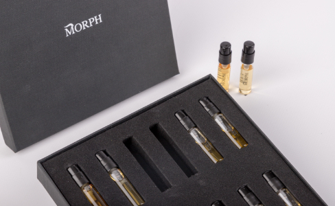 Morph è un brand di profumi, dedito alla creazione di fragranze sofisticate. Per presentare il suo set di campioni, ci ha chiesto di realizzare il packaging