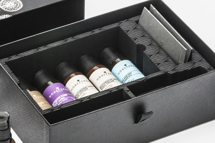 Per la propria linea di prodotti mirati al settore professionale, specifici per il trattamento viso corpo, l’azienda HobePergh desiderava creare un packaging che fosse in grado di comunicare al meglio l’esclusività che li caratterizza con semplicità ed eleganza, ma anche di proteggere efficacemente i prodotti durante il trasporto. Una sfida che doveva tener conto delle esigenze del cliente e dell’abbinamento del materiale espanso con la scatola in carta personalizzata.